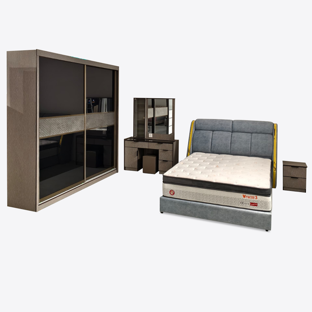 Miya Bedroom Set ~ Bedframe + Wardrobe + Dressing Table & Stool + Side Table