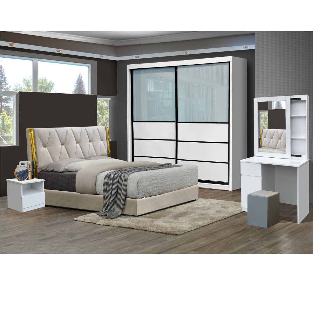 Wednes Bedroom Set ~ Bedframe + Wardrobe + Dressing Table & Stool + Side Table